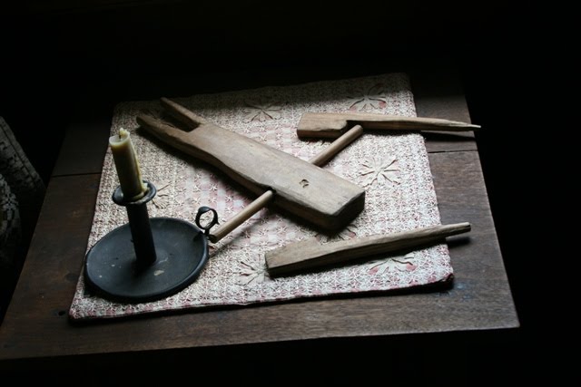 beeswax candles & a tool used to tighten the bed robes (seen in the next photos) when they began to sag...